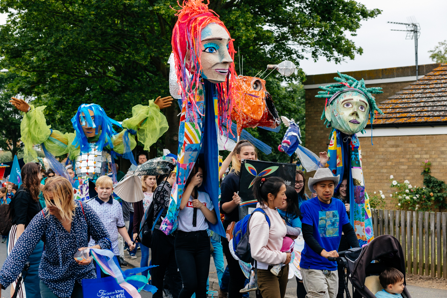 By way of welcoming the North Cambridge community to the newly refurbished Kettle’s Yard, Nicholas combined Tate Exchange and the community into a single project based on North Cambridge’s annual Arbury Carnival. Nicholas invited the carnival committee members to Tate Exchange as a celebration of community creativity. This was partnered with textile workshops to build a patchwork representing the community from the event. Nicholas connected the Tate Exchange back to Cambridge by working with North Cambridge Academy students to recycle puppets and combine with the Tate Exchange fabric for the 2018 Arbury Carnival parade.